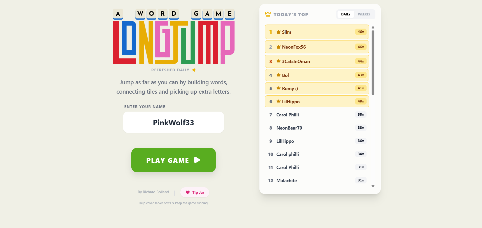 Long Jump is a daily word puzzle that combines the satisfaction of word games with the competitive spirit of track and field.